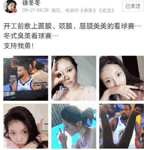 可以看到徐冬冬经常在社交平台上发布关于,勇士队的文章,也引起了很多球迷的关注,她经常在上面分享自己的生活。大家可以看到,无论是在开工的时候,她都会随时随地观看勇士队比赛,从时间上来看,徐冬冬已经支持勇士队好几年了,看来她对于勇士队绝对是真爱。她也被球迷称为"中国卡戴珊",也是中国美女演员,网友:勇士粉丝真幸福。