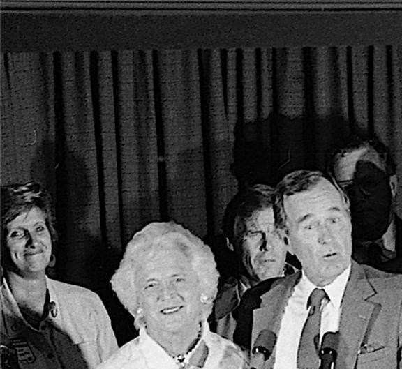 1988年,老布什不辜负芭芭拉对他的信任,成功当选为美国第四十任总统。芭芭拉也作为美国第一夫人住在白宫。她没有像里根和克林顿的妻子那样干涉政治,但无论老布什出访哪个国家,他总是握着妻子的手。
