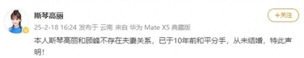 斯琴高丽清晰回应:我与顾峰从未结婚!