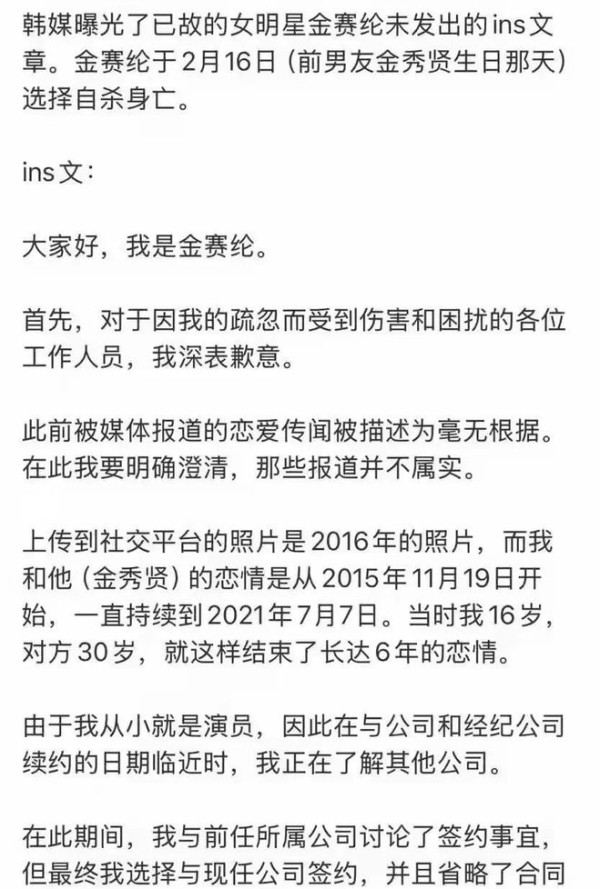 没想到分手后,金秀贤就一直催着金赛纶还账。并且金赛纶离世的这一天正好是金秀贤生日。
