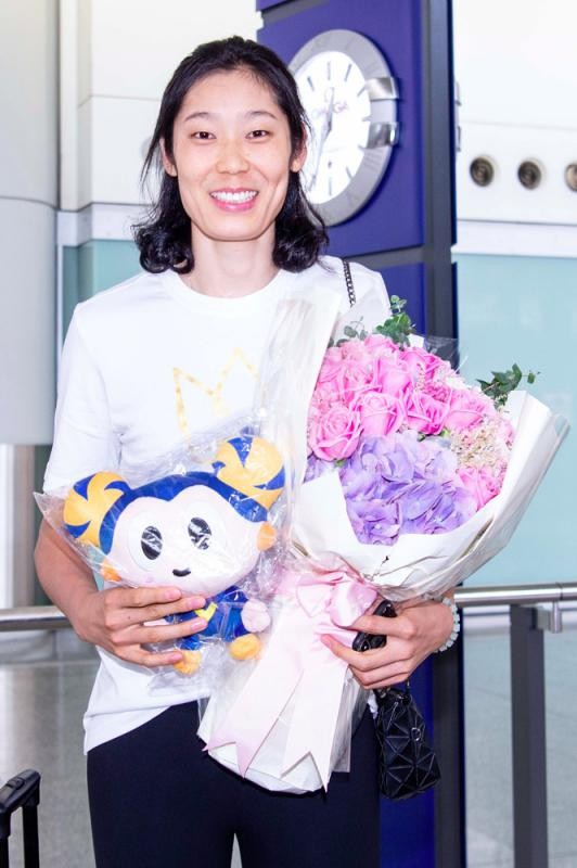 圖:朱婷昨天抵達香港國際機場後笑逐顏開 公關提供