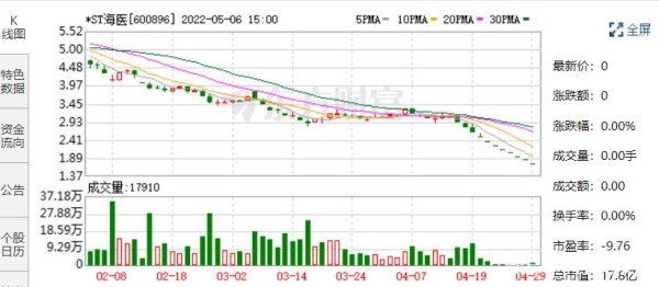其实,董事长失联“无法正常履职”超3个月,近半股份已质押给上海人寿,9连跌停的览海医疗“退市”已成大概率事件。