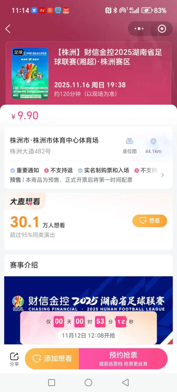 株洲赛区预约“想看”人数