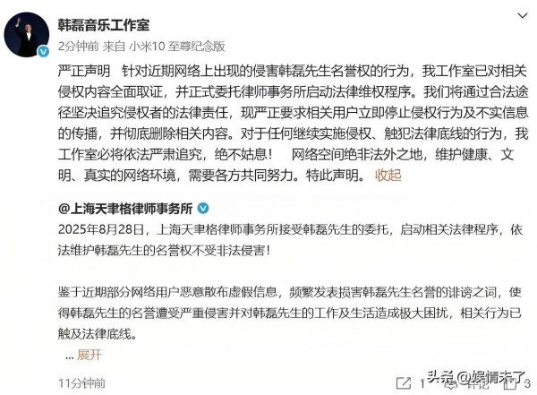 男明星让女粉丝身陷囹圄!韩磊报警刑诉,追究女方造谣诽谤之责!
