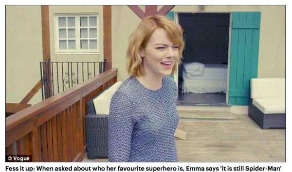 这简短的几句话,让人深感触动。同样地,石头姐在最近也坦言自己依然对加菲怀着深厚的感情。她表示:“蜘蛛侠!”当被问及她最钟爱的超级英雄是谁时,她露出了思索的神情,毫不犹豫地回答道。