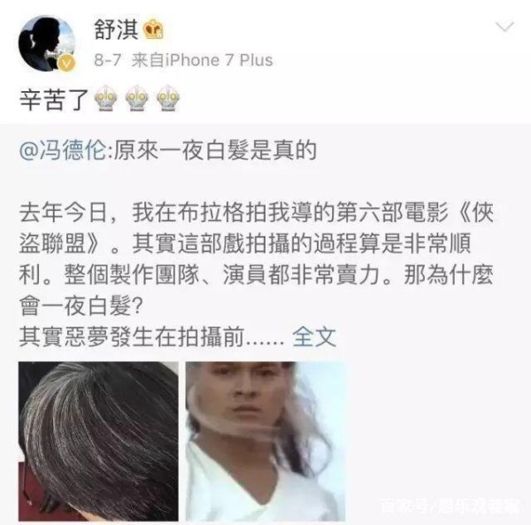 两个人婚后其实一直都很甜蜜,去年8月,冯德伦在社交平台说起自己拍新片的困难,还吐槽自己头发一夜变白,舒淇立刻转发安慰:辛苦啦~,林心如更是评论了三个字:心疼了,简直说出了舒淇的心声。