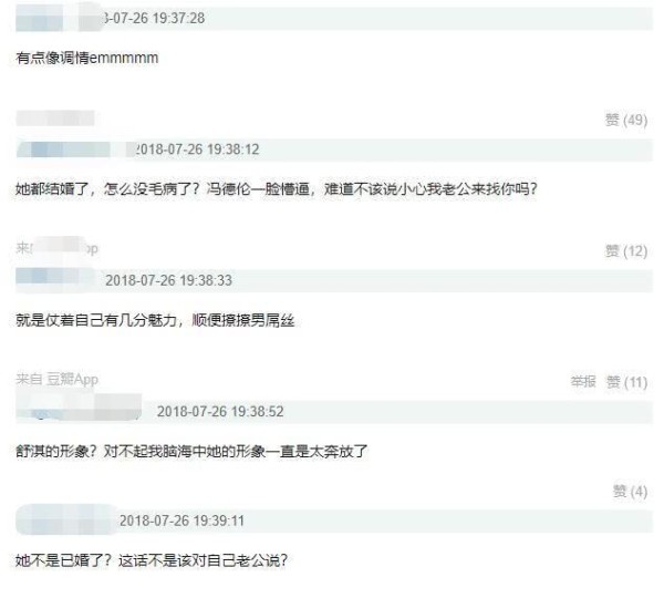 还有网友更直白的表示:“有点像调情”、“她都结婚了,怎么没毛病了,冯德伦一脸懵逼,难道不该说小心我老公来找你吗”、“她不是已婚了?这话不是该对自己老公说”?