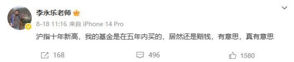 【大河财立方 记者 孙凯杰】“沪指十年新高,我的基金是在五年内买的,居然还是赔钱,有意思,真有意思。”近日,网络大V“李永乐老师”在微博上的吐槽引发了众多讨论。