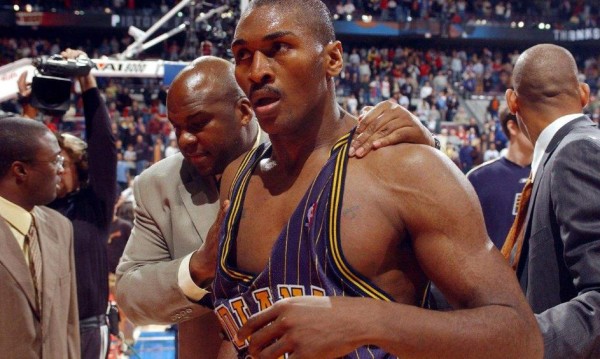 这位NBA的球星就是大家非常的熟悉的阿泰斯特,阿泰出生于1979年,在1999年的时候公牛选中,开启了自己的NBA生涯。在进入到NBA后,阿泰的数据其实还是非常的不错的,但是因为性格的问题一直没能成为全明星级别的球员。特别是当时在步行者效力时,制造了轰动一时的奥本山宫殿事件。而除了这个事情外,当年肘击哈登也是让很多的球迷都其嗤之以鼻。