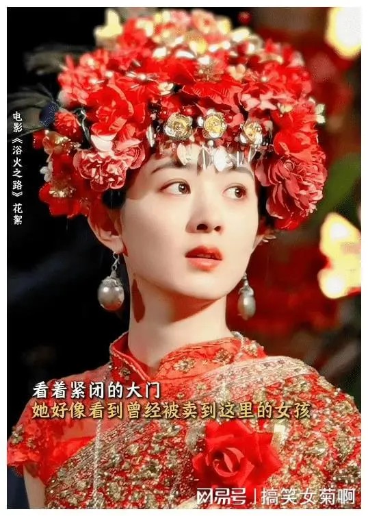只是没想到她的新电影里面,也有她簪花的场面,她穿着火红色的嫁衣,头上簪满了火红色的鲜花,趁的她是那样的好看,青春动人,可谁知道这样鲜活的她一脚踏进的是怎样的魔窟,或许是察觉了命运的转折,穿着鲜艳嫁衣的她眼中珠光闪过。