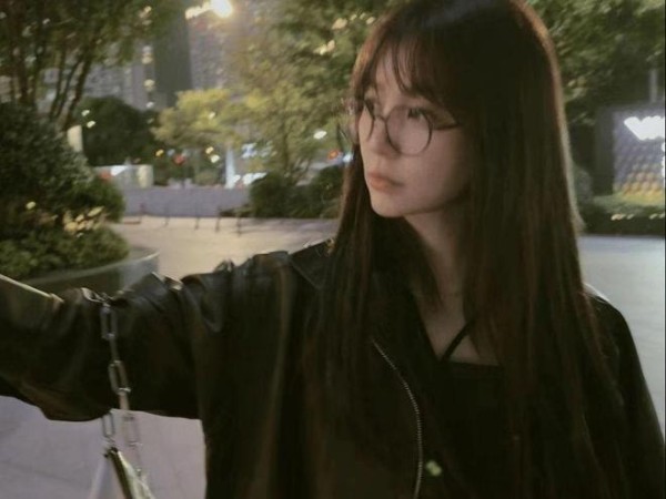 尹恩惠穿着深色的连衣裙搭配黑色的皮夹克外套,披散着长发,戴着细黑框眼镜,看起来很有小清新的风格。很多照片都是近距离的怼脸拍,可以看得出她的皮肤真的很不错。