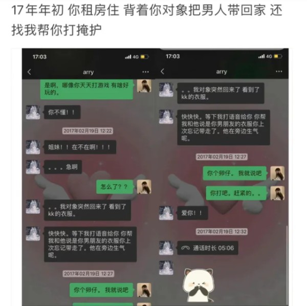 其次就是在17年的时候,也就是跟小虎谈恋爱的时候,把陌生男人带回家,那个男的把衣服留在了家里,被小虎看到了,于是还打电话给当事人,让当事人帮忙打掩护。哪怕在去年,她还找陪玩,甚至遇到长得不错的服务员,还要去勾搭一番,几乎是把安然的一些事情,抖得一干二净。