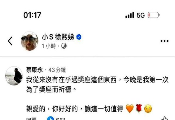 他没有高声煽情,就是很温柔地说,自己第一次为奖项祈祷,只是因为希望小S能用奖杯作为新的开始。