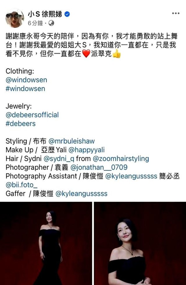 小S在领奖之后也很直接地表达了感谢,说正是因为有康永哥在,她才敢重返舞台。