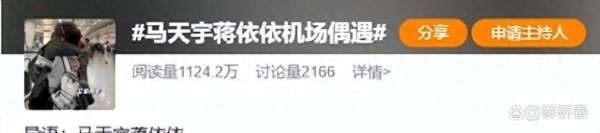 我最近看到一个视频,真的火得不行。是马天宇和蒋依依在机场碰到了。这个话题一下就冲上了热搜,半小时就有一千多万人看。好多人都说,这俩人太甜了,太有爱了。
