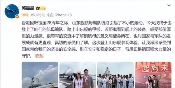 登上山东舰,郭晶晶晒最新合照!霍启刚回应:很感动,真的感动
