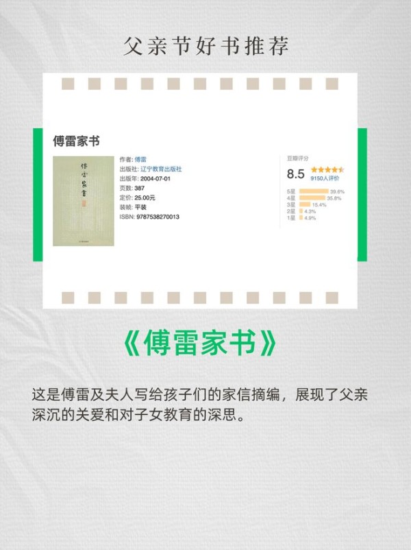 ✅《傅雷家书》:这是傅雷及夫人写给孩子们的家信摘编,展现了父亲深沉的关爱和对子女教育的深思。