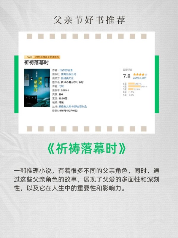 ✅《祈祷落幕时》:一部推理小说,有着很多不同的父亲角色,同时,通过这些父亲角色的故事,展现了父爱的多面性和深刻性,以及它在人生中的重要性和影响力。