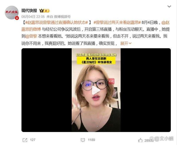 曾黎通过直播 确认赵露思状态,赵露思:你不用来,我真挺好的