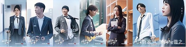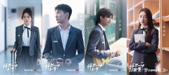 气质美人张浩昕在书架前抱书而立安静地注视前方,一头黑色长发、齐刘海儿的朱非儿看起来灵巧可爱,如邻家女孩一般。身着笔挺制服的董晚辉帅气逼人,阳光运动型男马文轩头戴黑色线帽,笑容张扬任意。