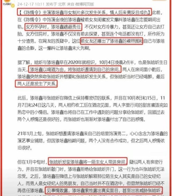 各路网友纷纷在社交媒体上发表“高见”,有人指责漆培鑫是典型的渣男,也有人惋惜张皓炘的遭遇。