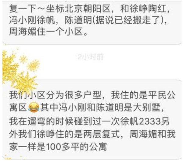 本以为能和明星住在同一个地区的人应该不多。没想到基本上是自己或周围的人有过这样的经验,偶然相遇,jbr和fxb住在同一个地区,华谊可能是为了大家方便,所以租给他们的宿舍。