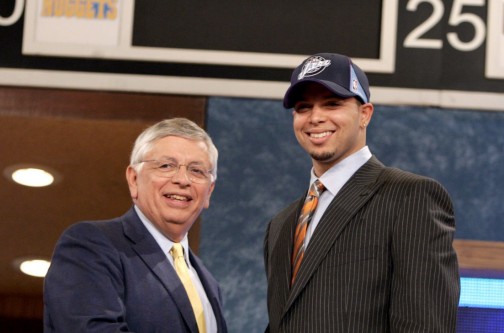 2005年NBA选秀大会德隆(右)在首轮第3顺位被爵士选中