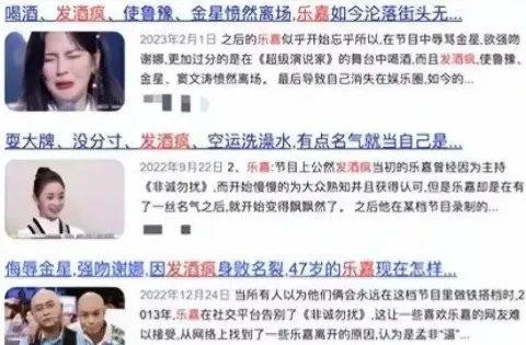 结果酒喝多了,乐嘉情绪一下子失控了,在现场又吵又闹,行为特别失态。当时现场乱成了一锅粥,鲁豫满脸不满,金星直接气呼呼地走了。