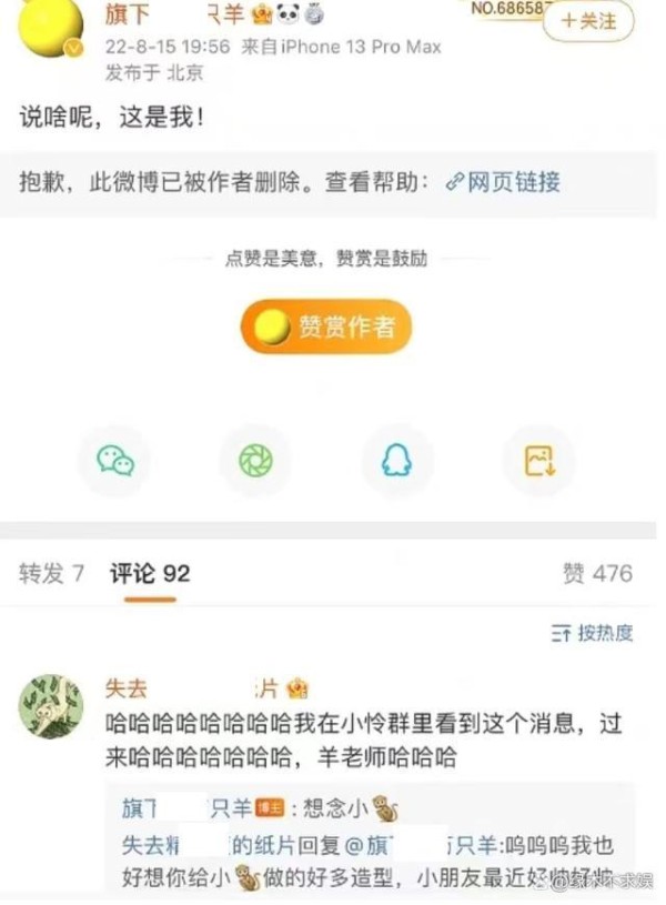 她转发了爆料者的微博说:“说啥呢,这是我”,并表示自己是给王鹤棣做造型的,两人只是朋友间的合影。