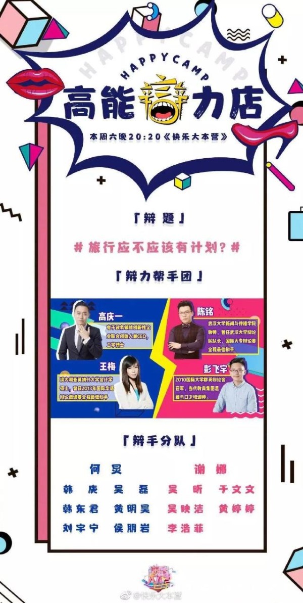 这不,2019年刚开始,陈铭又登上了《快乐大本营》,一个辩手上快本,还将嘉宾和主持人分成队伍辩论,看来陈铭老师是红到娱乐圈了。