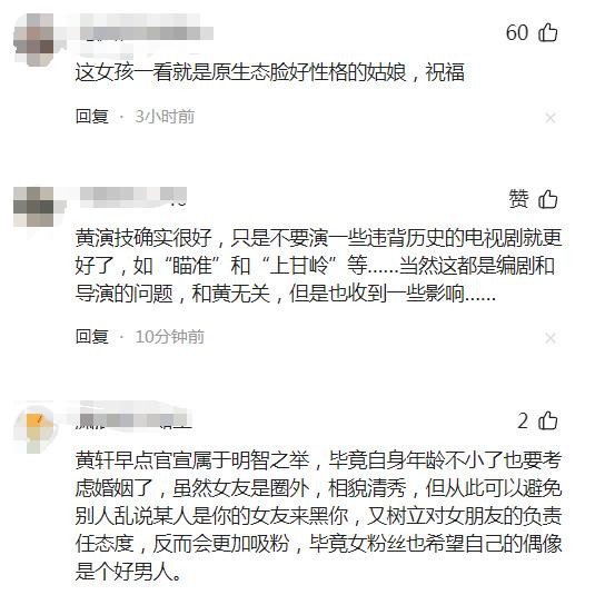 他直言:“是的嘿嘿”,不避讳的回应引得网友纷纷热议。这也标志着黄轩自出道以来,首次公开了自己的女友身份。尽管大家早已从他之前偶尔的透露中猜出一二,这次的“官宣”却给了大家一个惊喜,甚至让一些“吃瓜群众”感到有些措手不及。