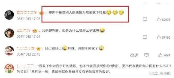 这位网友一针见血:那你不接受别人的感情为啥要收下转账?