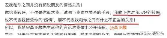 徐梓钧确认收高亚麟转账,但否认接受了感情,更不代表不正当关系