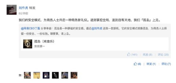 让人惊喜的是,近期丁磊分享的动态却引起了一众网友的关注,其分享了单曲《孤岛》并配文称,“孤岛是一众静谧的安全感,最近刘作虎送我一款新机,它的安全模式就像孤岛,为商务人士保留一份安全、一份松弛。聊要事,请上岛”。同时结合OPPO首席产品官刘作虎的回复,我们可以猜测丁磊很有可能已经提前用上OPPO即将发布的折叠屏新品——OPPO Find N3,并被该机的安全模式给圈粉了。