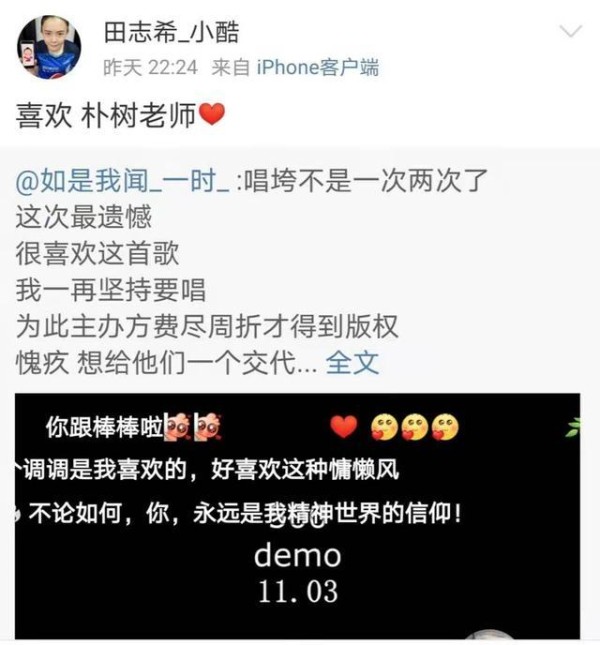 近日,韩国乒乓球运动员田志希更新个人社交媒体表示自己喜欢朴树老师。