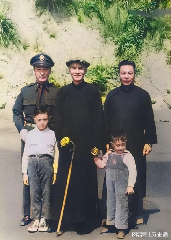 1975年宋美龄与蒋经国和蒋纬国合影,蒋纬国罕见的曝光超过哥哥