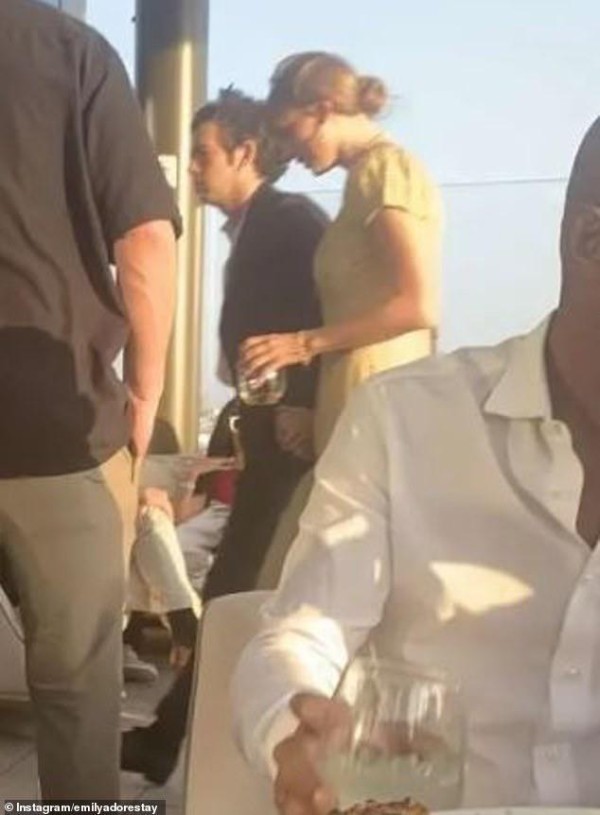 在这次在酒店的约会中,泰勒身穿一条黄色的夏季连衣裙,把自己的金发扎成了一个低低的发髻,看起来非常优雅。而希莱则全身黑色出席,戴着一副墨镜,头发卷曲而自然,非常帅气。