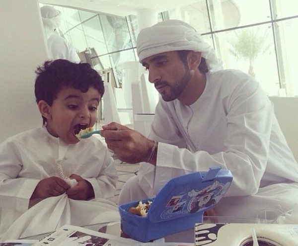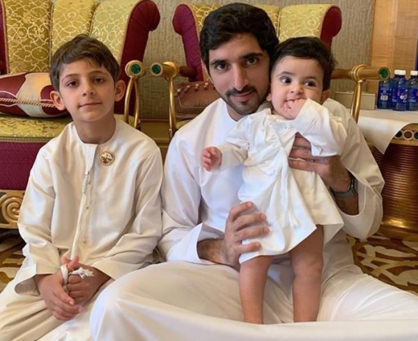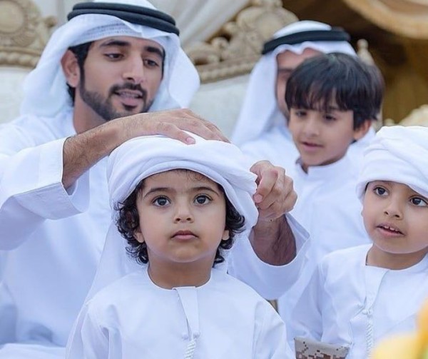 哈曼丹王子花式晒娃,一手一个无限溺爱,换上民族亲子装好惊艳迪拜王室晒成员照片,哈曼丹携嫡子出镜,父亲节父子同框尽显幸福