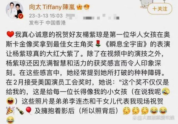 这件事又一次凸显了真正的友谊无价之处。由于工作关系,李连杰和杨紫琼之间不仅有深厚的友谊关系,而且还有家人的亲情和敬意之情。这份可贵的友谊在我们的生活中发挥着重要作用。