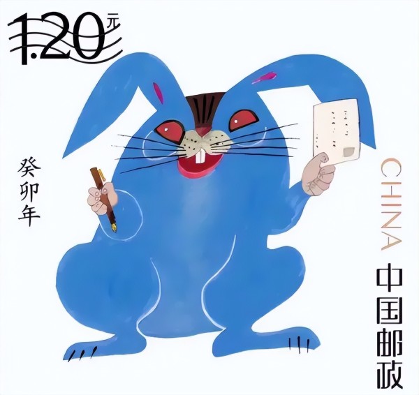 黄教授设计的“兔票”,一改刻板的“小白兔”印象,采用了蓝色为主,兔子右手执笔、左手持信的卯兔形象,但网友却纷纷表示仿佛看到了“童年阴影”。