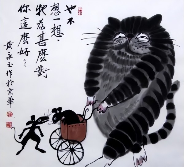 仔细看黄教授笔下的“卯兔”,本该是吉祥兔的形象,但却有一双通红的眼睛,再加上红色的大嘴还有酷似老鼠的胡须,吉祥兔也变身邪恶大耗子,网友也直呼“阴间气息十足”!