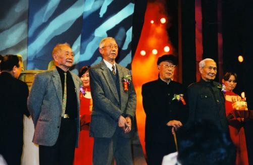 2003年,中国文联、中国美协向老一代美术家颁发“中国美术金彩奖·终身成就奖”(左一为黄永玉)。(来源:画廊)