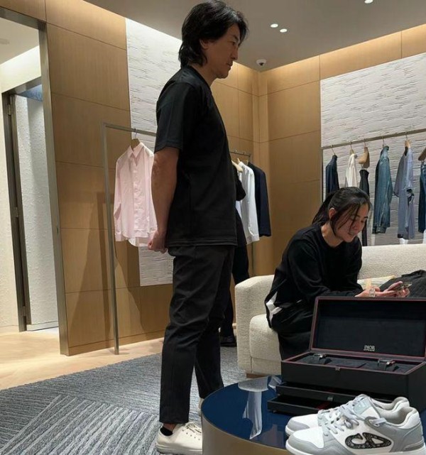 郑伊健和蒙嘉慧在日本商场退税,两人打扮朴素,外表完全不像明星
