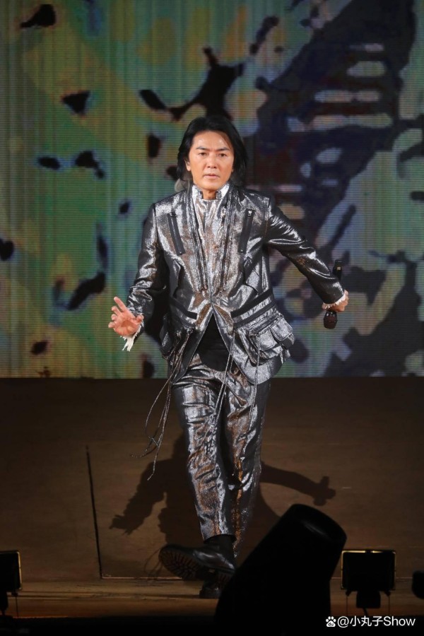 台上的郑伊健换了几套时髦造型,一身亮色的套装打扮炫酷有型。每一个动作都尽情投入其中,在舞台上又蹦又跳,跟着音乐摇摆身体,一点看不出是55岁的中年人,看起来平时有健身的习惯。旺盛的荷尔蒙极度彰显雄风,一头长发都没有改变,还是当年的古惑仔啊!
