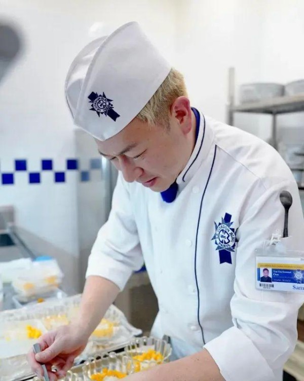 去年,陈键锋更是继续他的进修之路。他又赴泰国曼谷读1895年创立于巴黎的蓝带国际学院(LeCordon Bleu烹饪学校),该校 被认为是世界上最著名的法国厨艺和甜点学校。