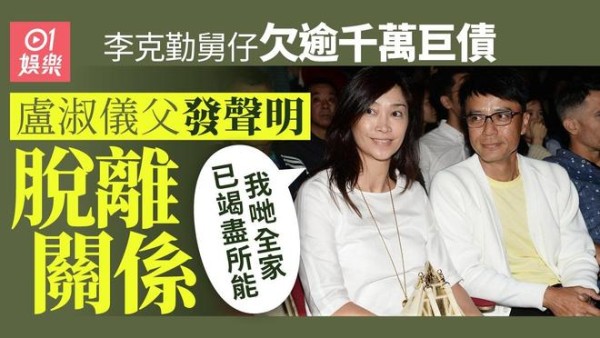 李克勤的妻子卢淑仪发声回应,称因为弟弟的债务问题,目睹年迈父亲晚年饱受煎熬,十分痛心,多年以来,全家已竭尽所能,多次为其处理债务,几乎倾尽所有但情况未见改善,与家人商议后才做出艰难决定。