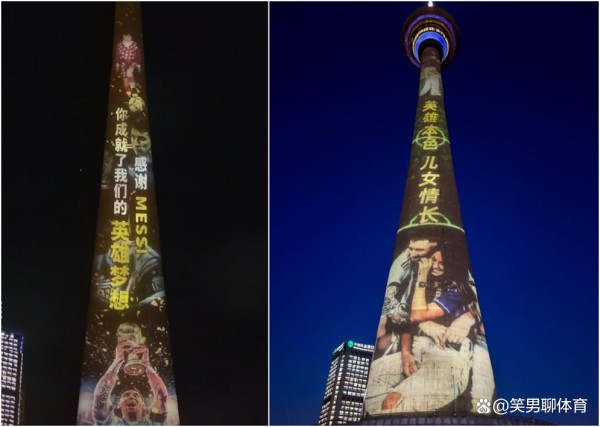 2021年夏天,梅西离开了效力21年的巴塞罗那俱乐部,天津灯塔专门为梅西点亮,除了展示梅西在巴萨的巨幅照片,还配上了“莫愁前路无知己,天下谁人不识君”这样的高燃诗句。