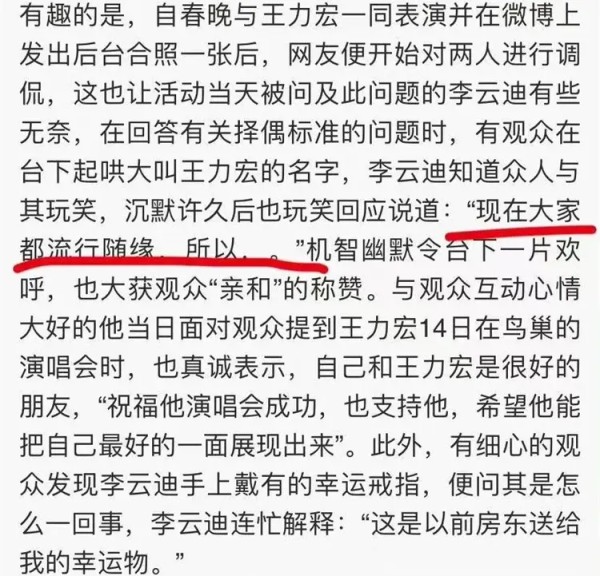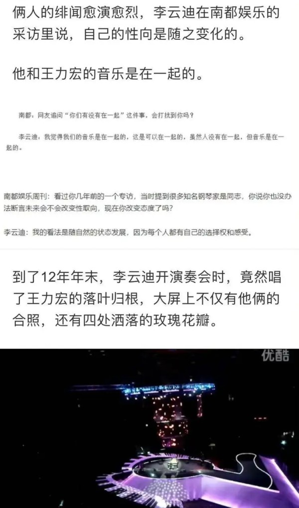 李云迪每次被记者问起王力宏的问题,李云迪总是给一个模棱两可的回答,他从来不说“我和王力宏没有恋爱”这样的话,说明他是想借王力宏炒作的。而且,李云迪还会主动唱王力宏的歌,还多次祝福王力宏。