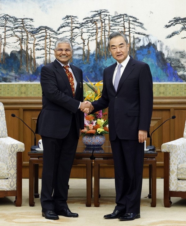2022年6月22日,国务委员兼外长王毅会见印度新任驻华大使罗国栋。