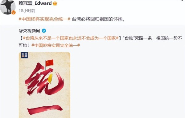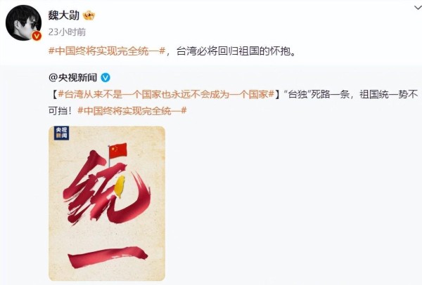 央视发文“台湾不是一个国家”,5位台湾艺人转发,王心凌沉默
